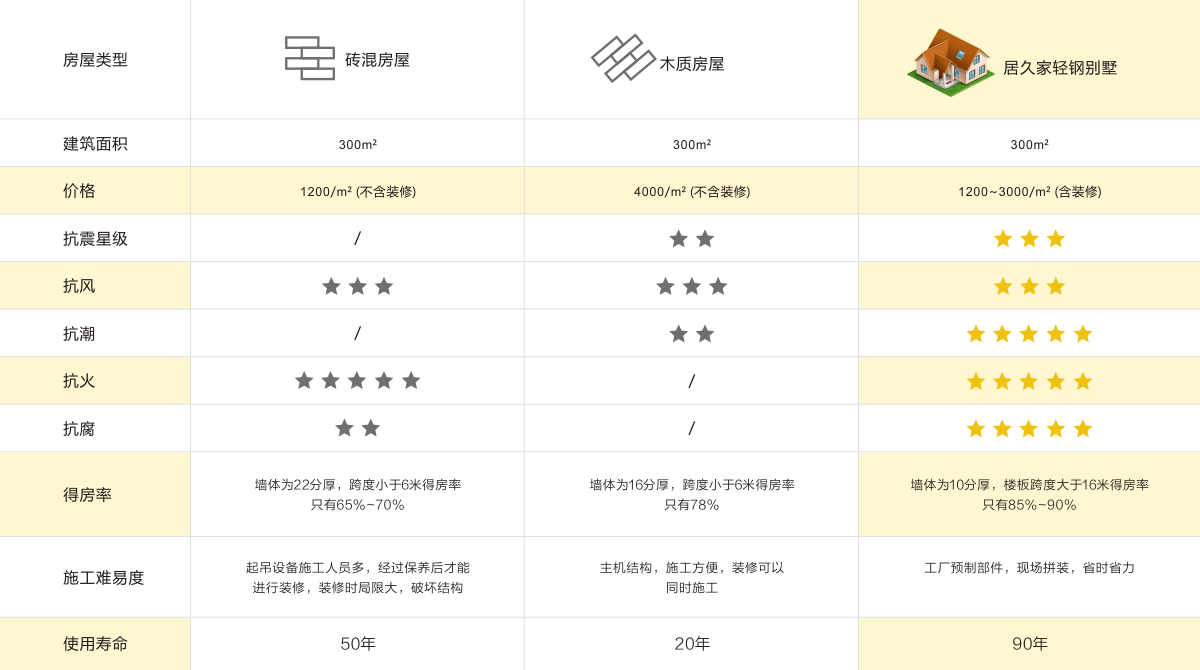 居久家房屋輕鋼房屋體系,抗震能力達(dá)9級,抗風(fēng)能力達(dá)13級。
